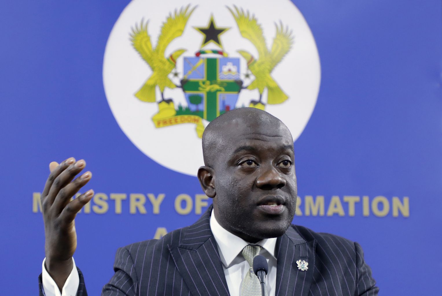 Ghana's Minister of Information Kojo Oppong Nkrumah speaks during a news conference on the rescue.
