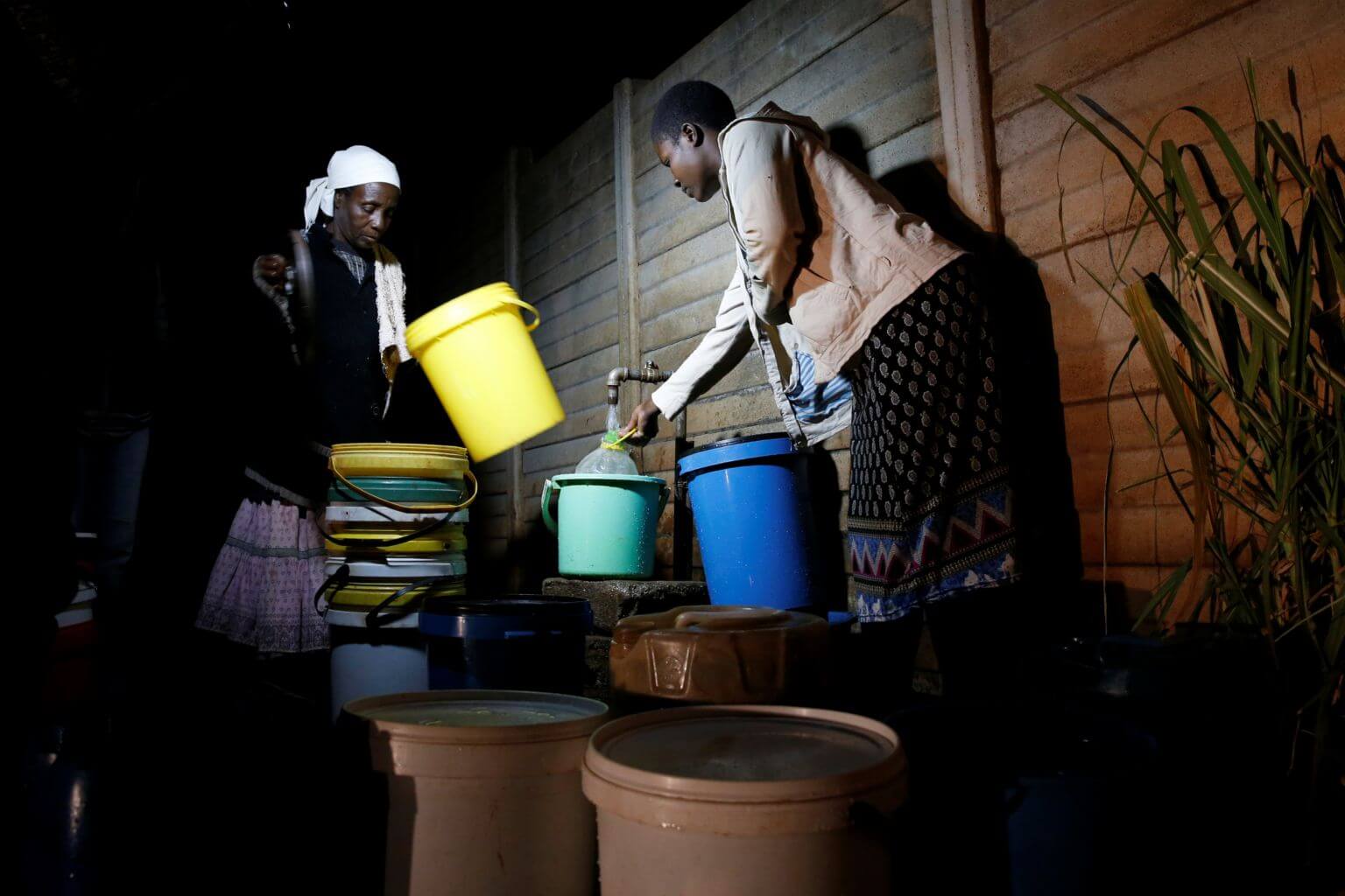 Residents collect water at night from an electric-powered borehole, as the country faces 18-hour daily power cuts, in a suburb of Harare, Zimbabwe, on July 30, 2019.