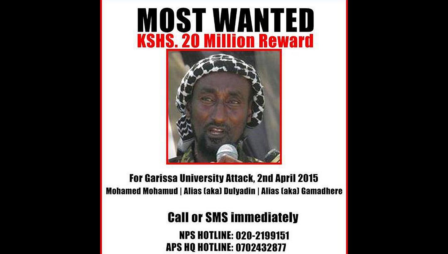 A $215,000 ($S290,187) bounty has also been offered for alleged Al-Shabaab commander Mohamed Mohamud, a former Kenyan teacher said to be the mastermind behind the attack - and believed to now be in Somalia.