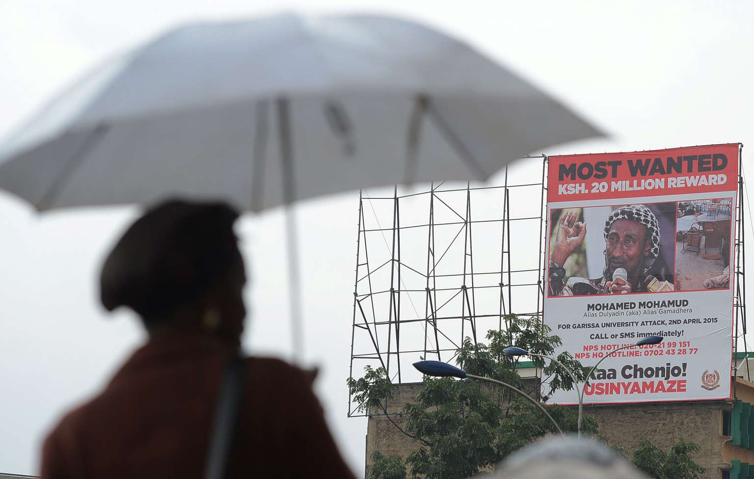 A billboard poster erected in Nairobi in 2015 by the Kenyan government shows the militant known as Dulyadin.