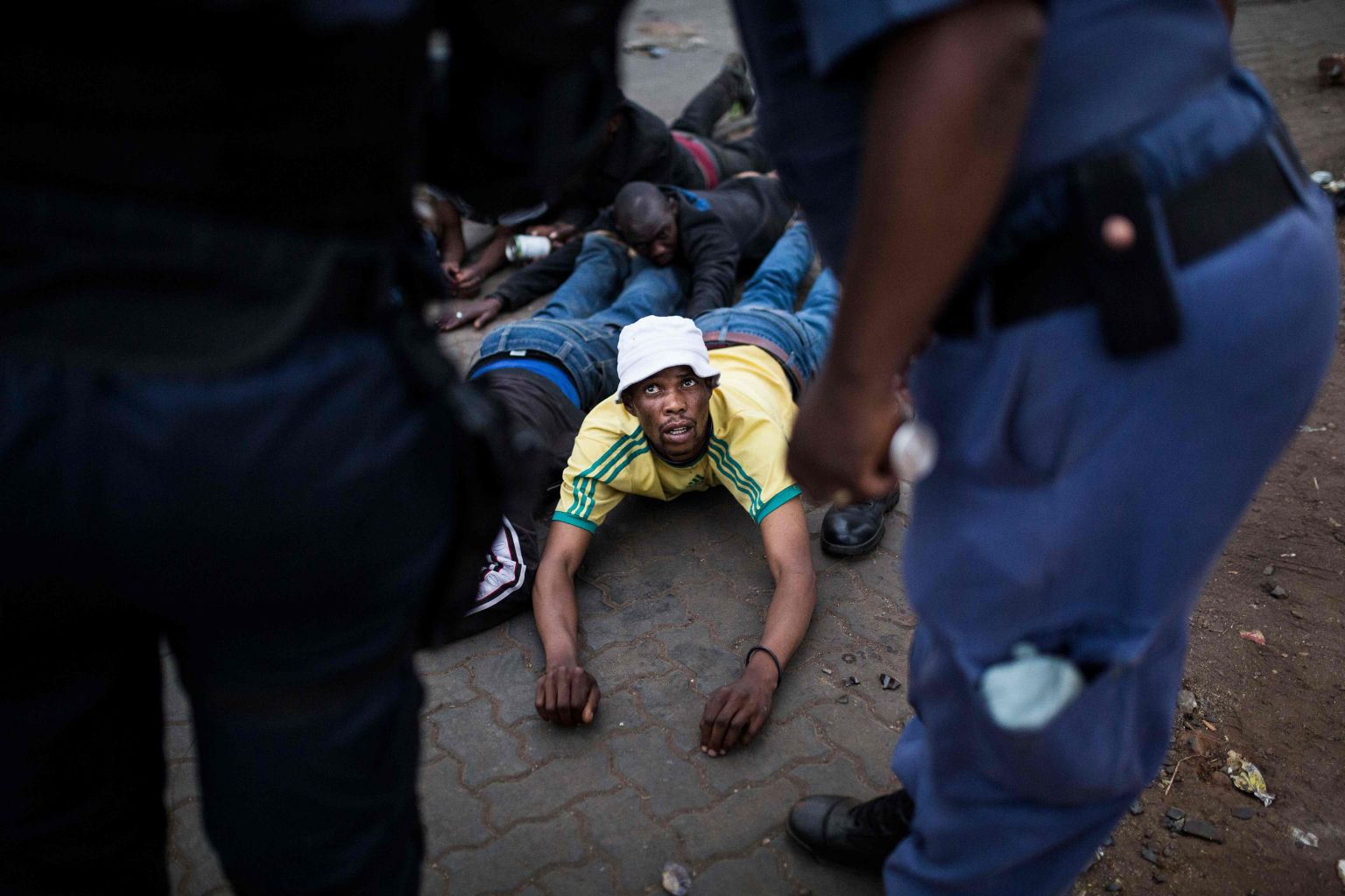 Men are arrested by the police in Johannesburg Katlehong Township amid anti-foreigner violence, on Sept 5, 2019.