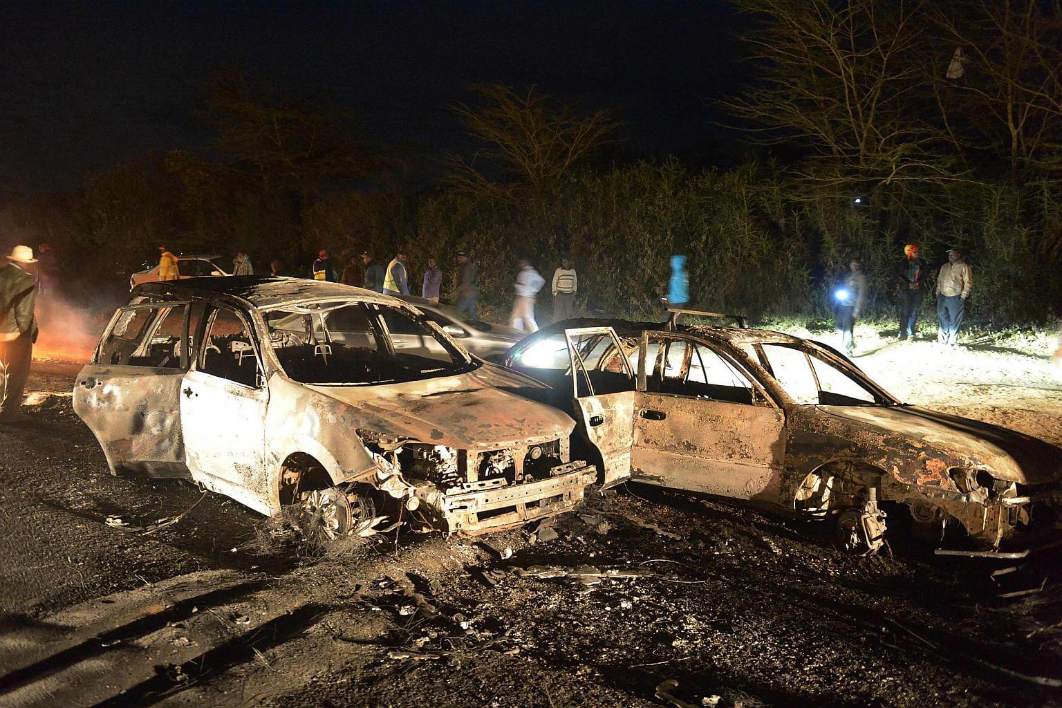 Vehicles damaged in an oil tanker explosion are seen in Karai, Naivasha, on Dec 11, 2016.