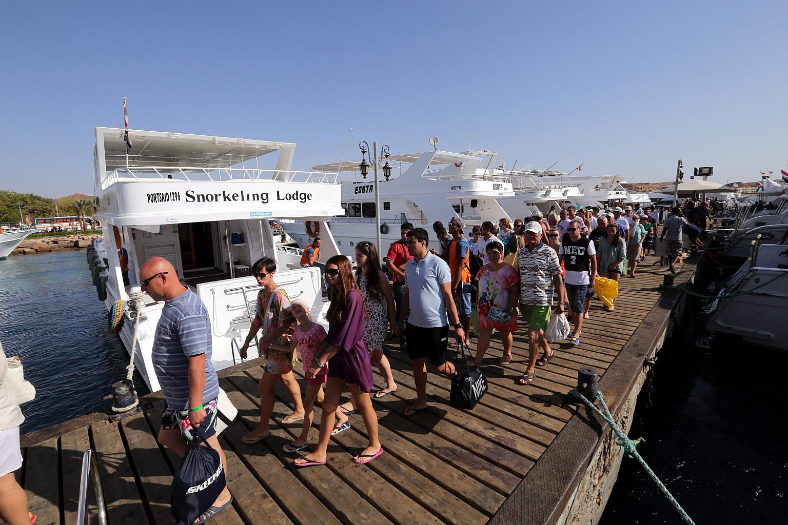Tourists prepare to board boats at Sharm el-Sheikh, Egypt, on Nov 8, 2015.