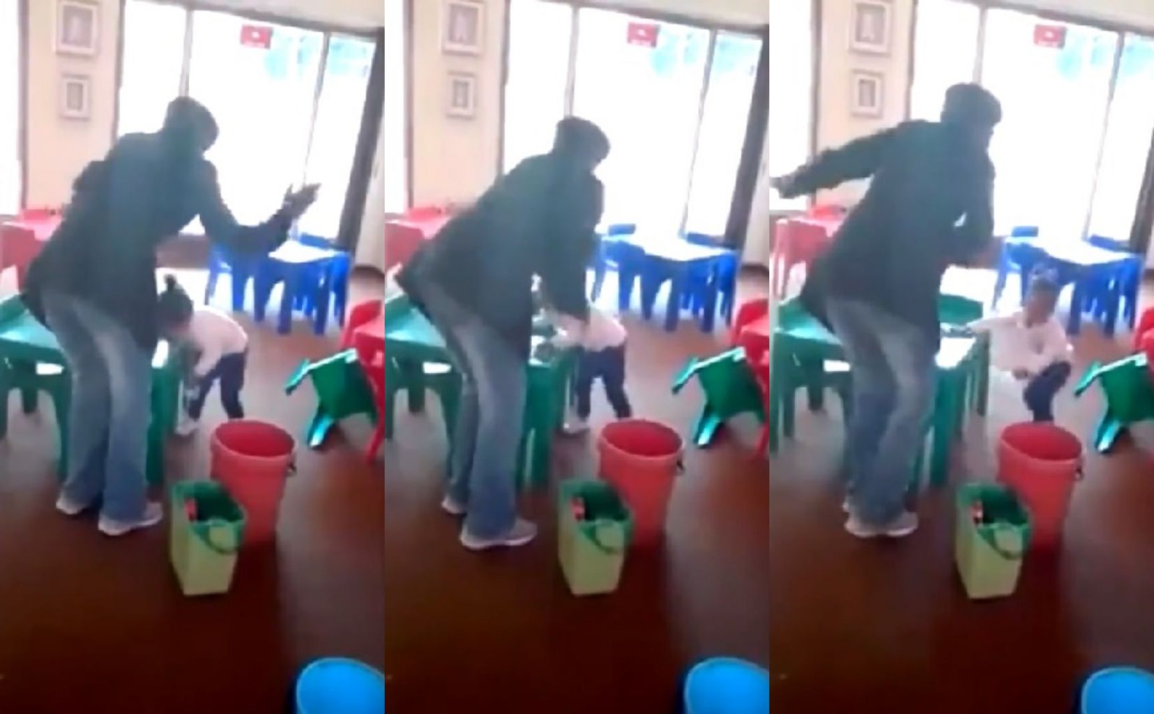 Yet another shows a teacher beat a boy on the head, then grabbing him and throwing him to the ground.
