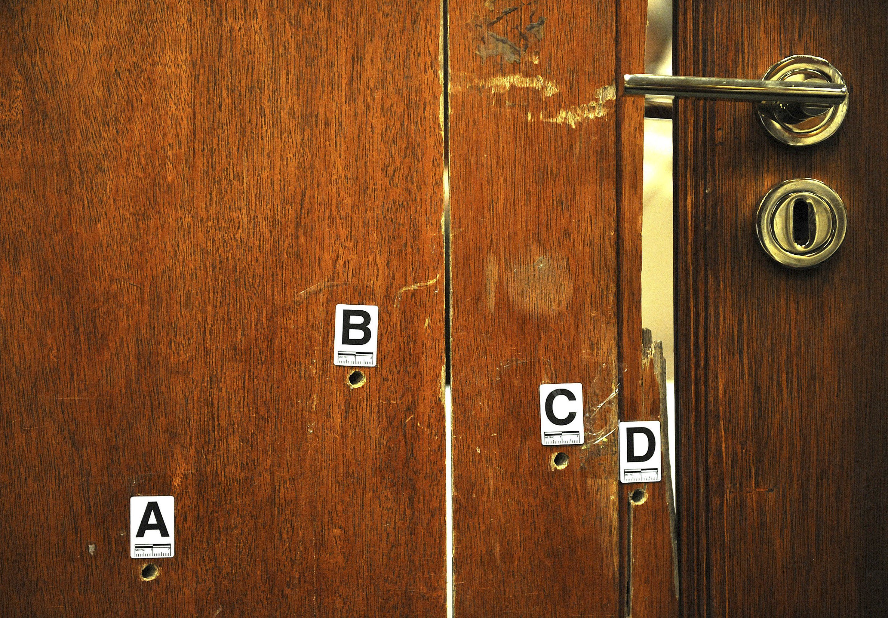 Ms Steenkamp died almost instantly after she was shot four times in the head, arm and hip through the toilet door.