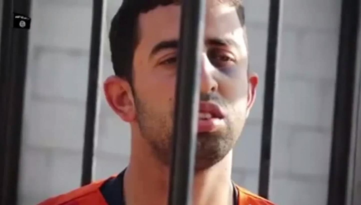 A screenshot of video footage online said to show Jordanian pilot Maaz al-Kassasbeh, who was captured by Islamic State militants in December. -- PHOTO: YOUTUBE