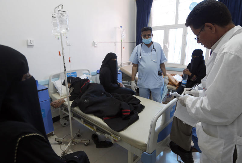 Yemenis suspected of being infected with cholera receive treatment at a hospital in Sanaa on May 25, 2017.