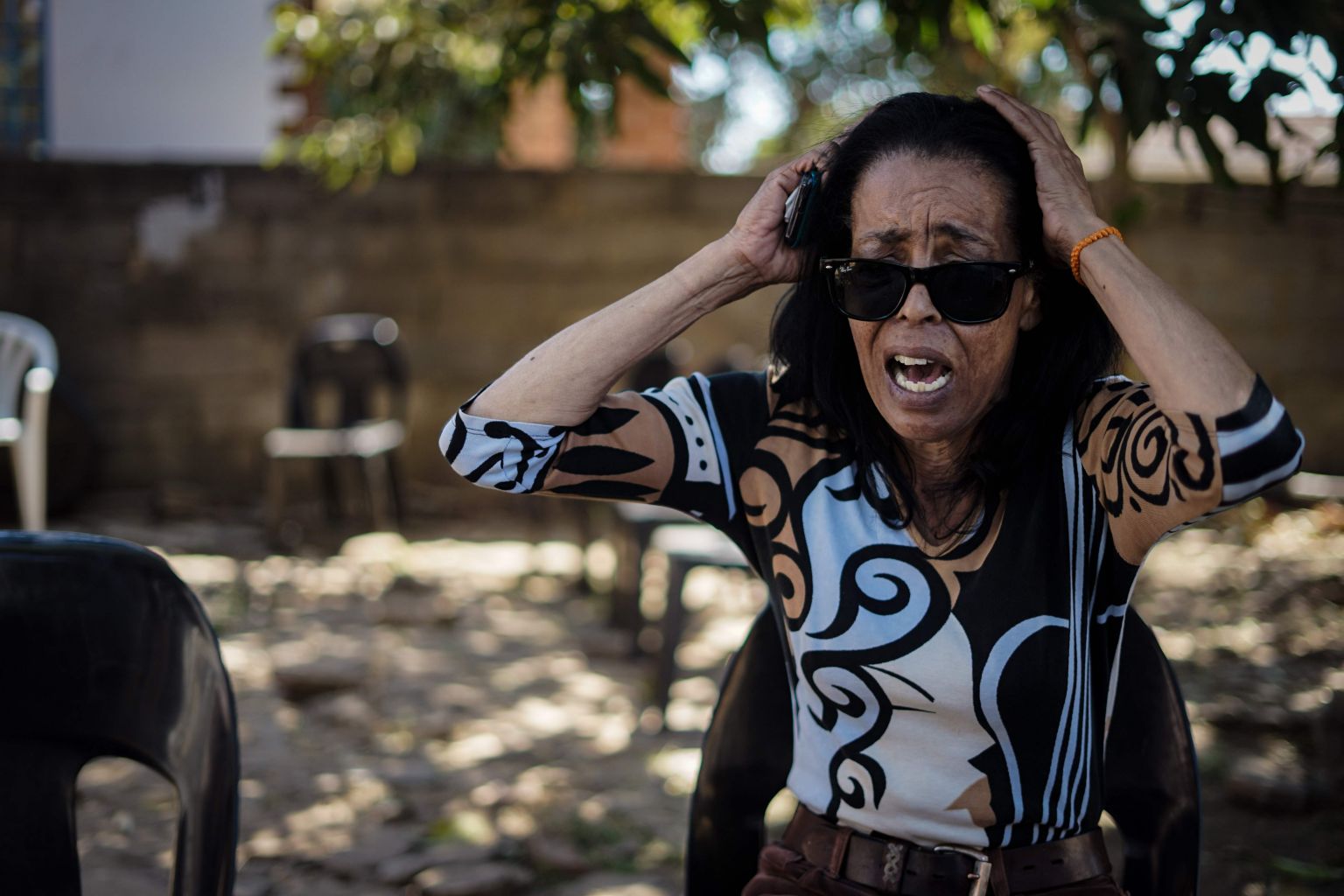 Jinty Rubinstein reacts over the shooting of her younger brother, Gavin Dean Charles, in post-election violence.