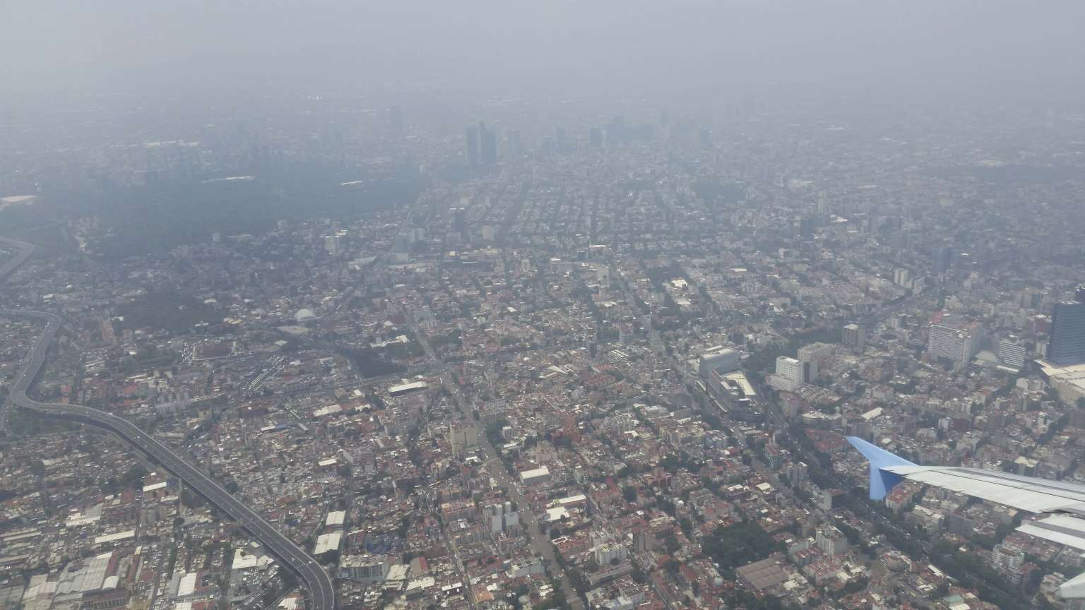 An aerial view of Mexico City covered by a layer of smog on May 30, 2016.