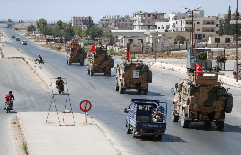 A photo taken on Sept 4 shows Turkish military vehicles patrolling near the Syrian town of Saraqeb, in the north-western province of Idlib.