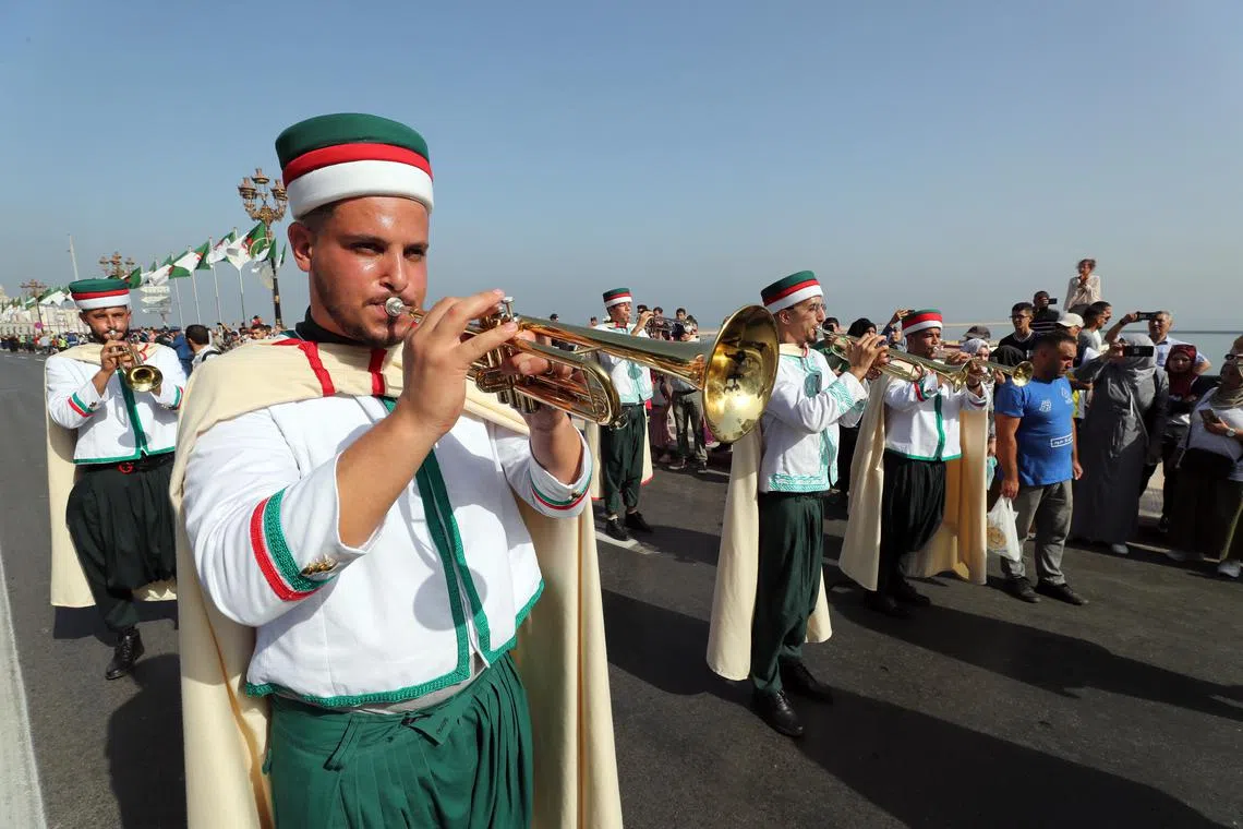 Traditional Algerian musicians perform during a parade held on the eve of the 31st Arab Summit in Algiers, Algeria, on Oct 31.