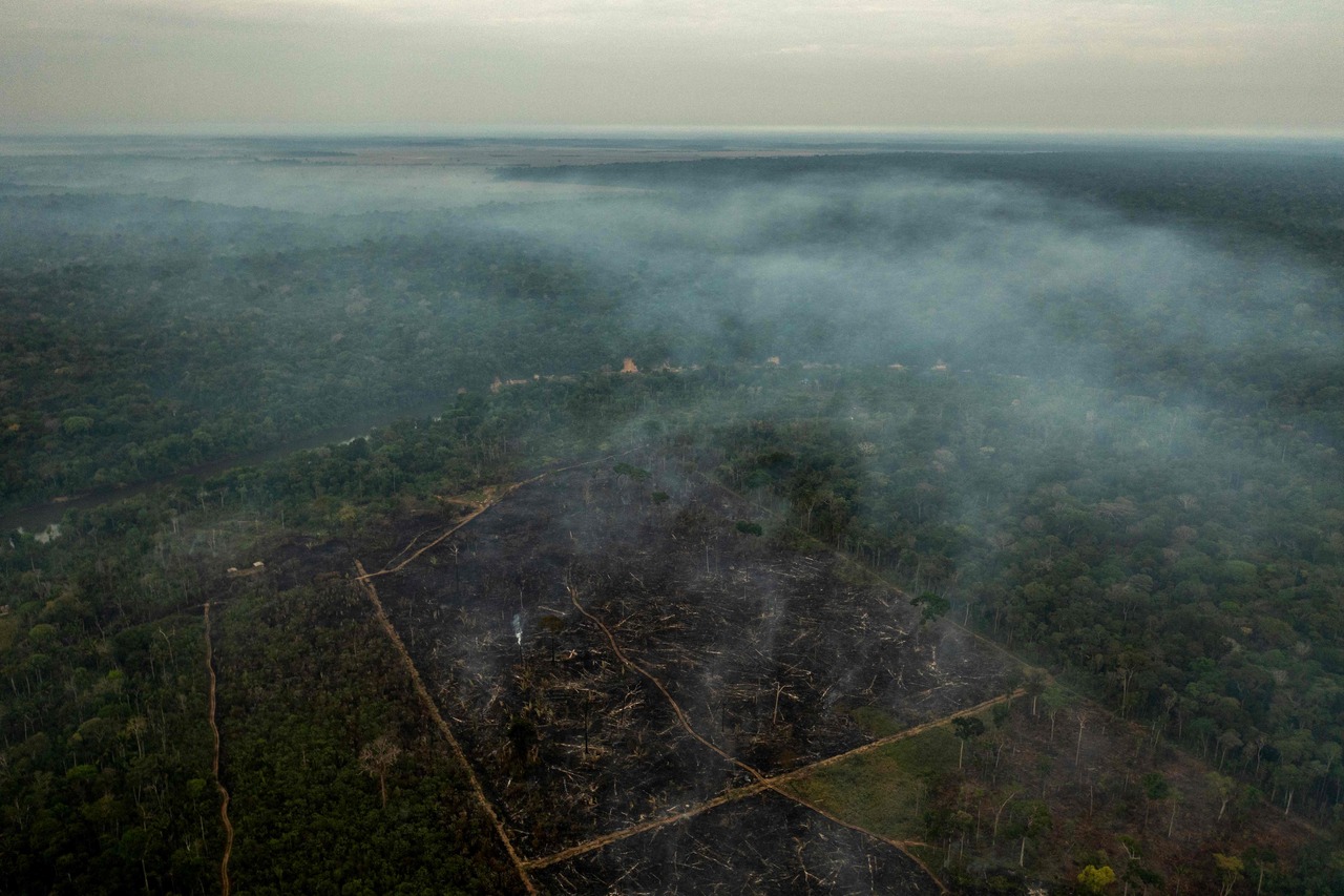 A burnt area of the Amazon rainforest, on Sept 15, 2021.