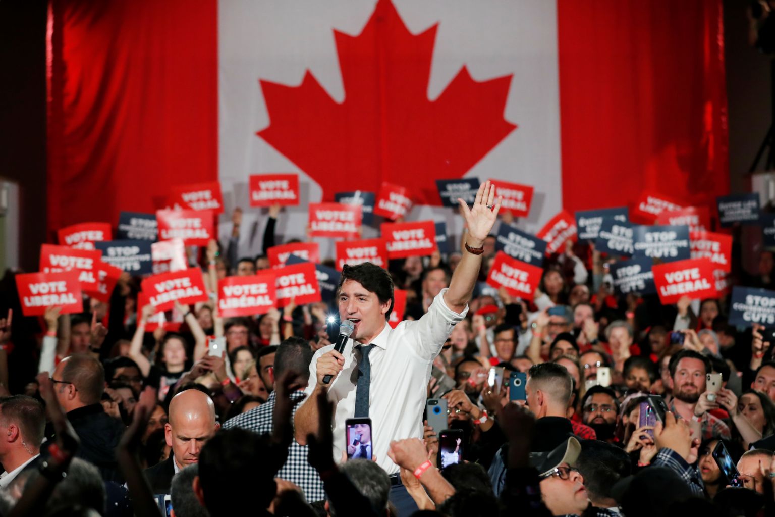 Canadian Prime Minister Justin Trudeau at campaign rally in Ontario, Canada, on Oct 19, 2019.