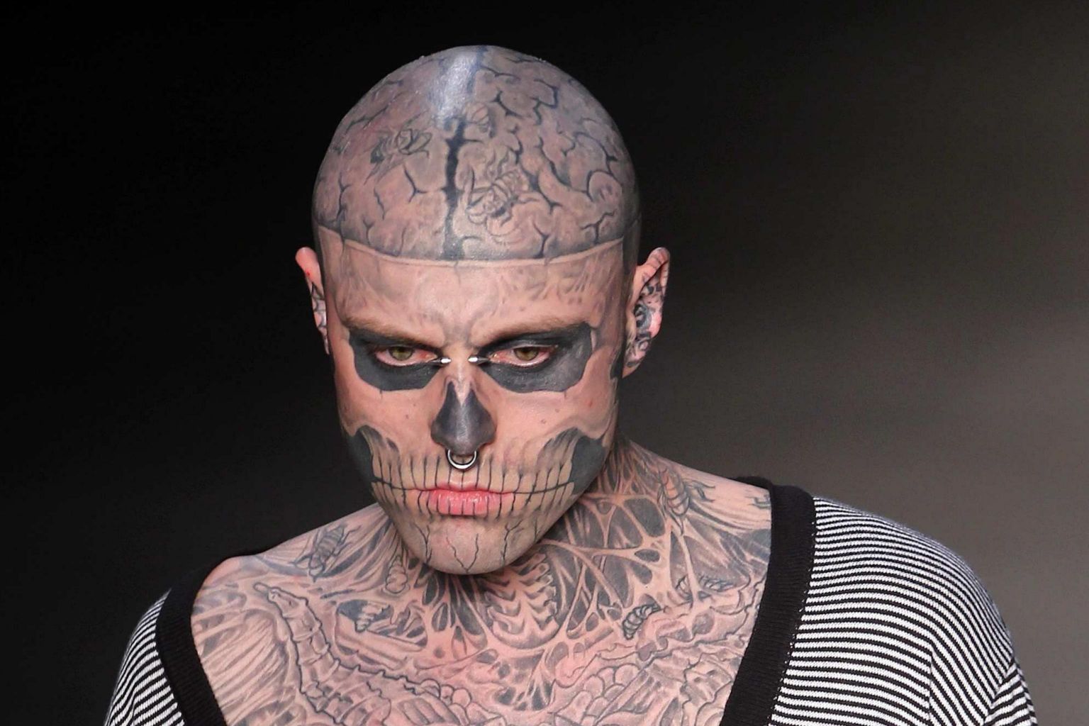 Zombie Boy, whose real name was Rick Genest, held world records for having the most bones and the most insects tattooed on his body.