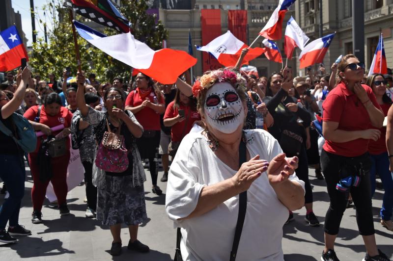 Health workers protest in Santiago on the fourth week of protests against the government of Chilean President Sebastian Pinera on Nov 11, 2019.
