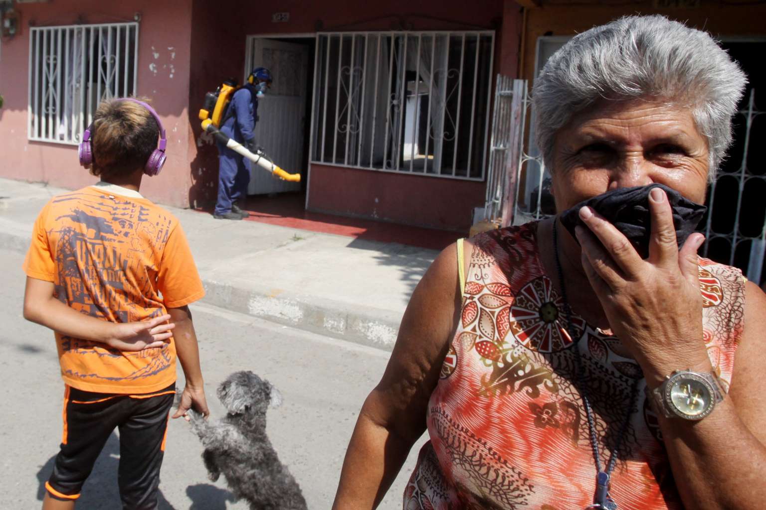 Residents wait outside as workers fumigate homes in Cali, Colombia, on Jan 28, 2016.