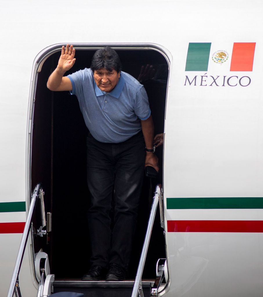 Morales arrives at an airport in Mexico after he was granted a political asylum.
