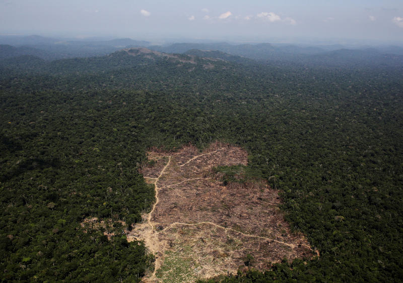 An aerial view of a tract of Amazon jungle recently cleared by loggers and farmers near the city of Novo Progresso, Brazil, on Sept 22, 2013.