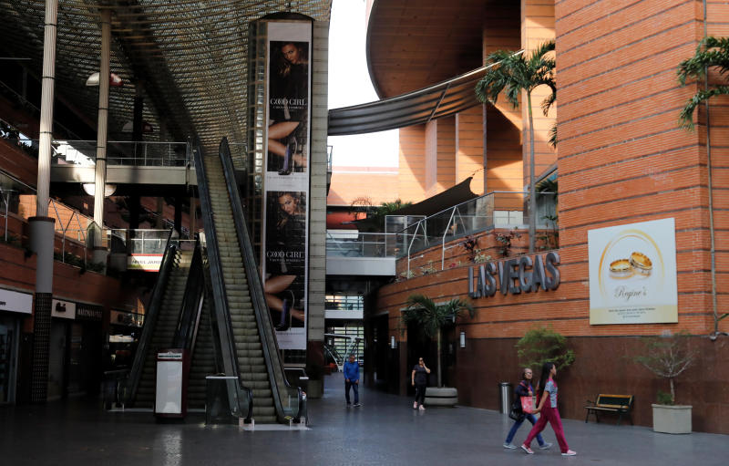 People pass by a shopping mall during a blackout in Caracas, Venezuela, on March 8, 2019.