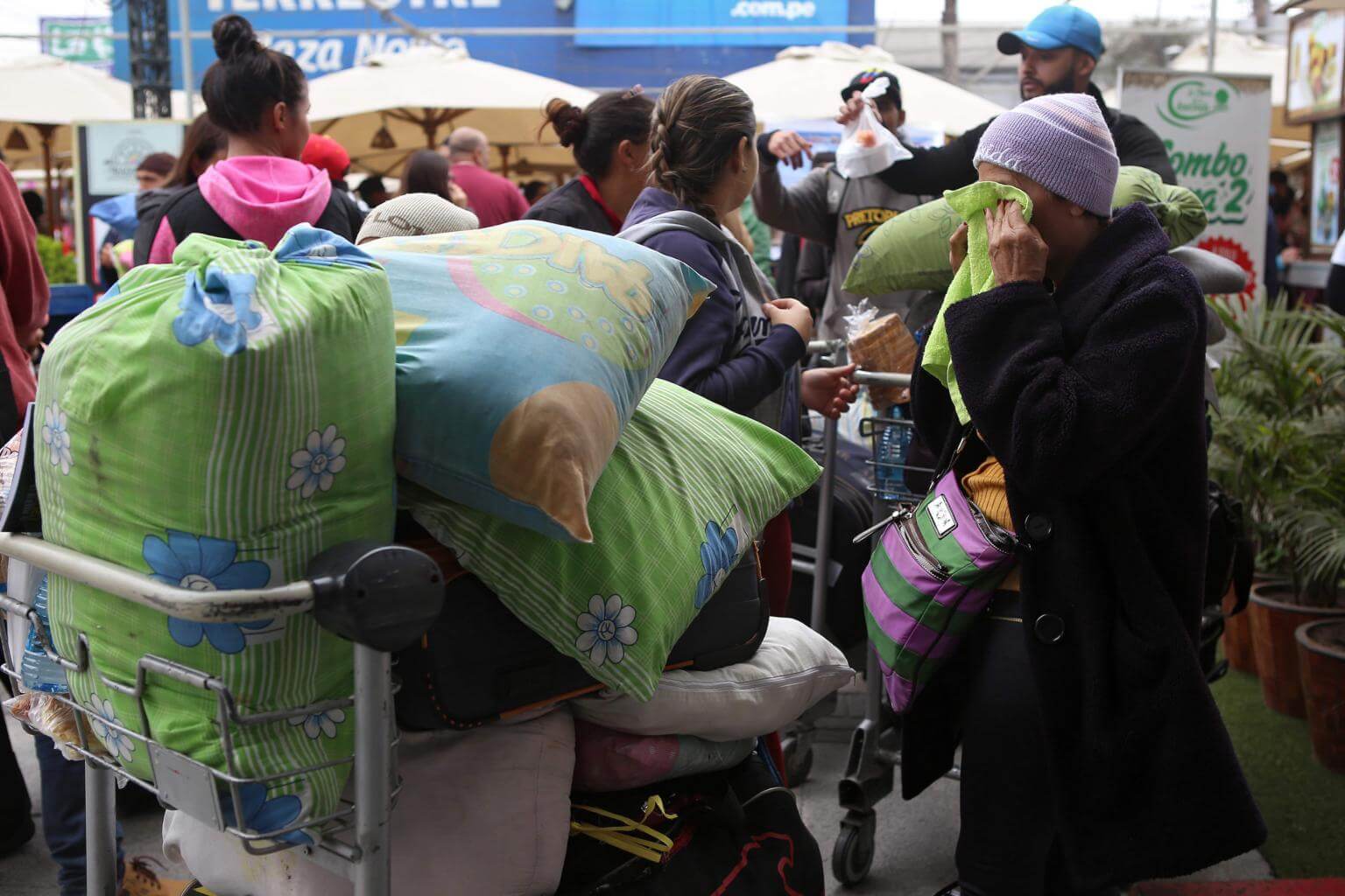 Venezuelan migrants arrive at a bus terminal after traveling for 20 hours from Tumbes, northwestern Peru, on Aug 26, 2018.
