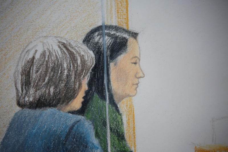Huawei CFO Meng Wanzhou, who was arrested on an extradition warrant, appears at her B.C. Supreme Court bail hearing in a drawing in Vancouver, British Columbia, Canada, on Dec 7, 2018.