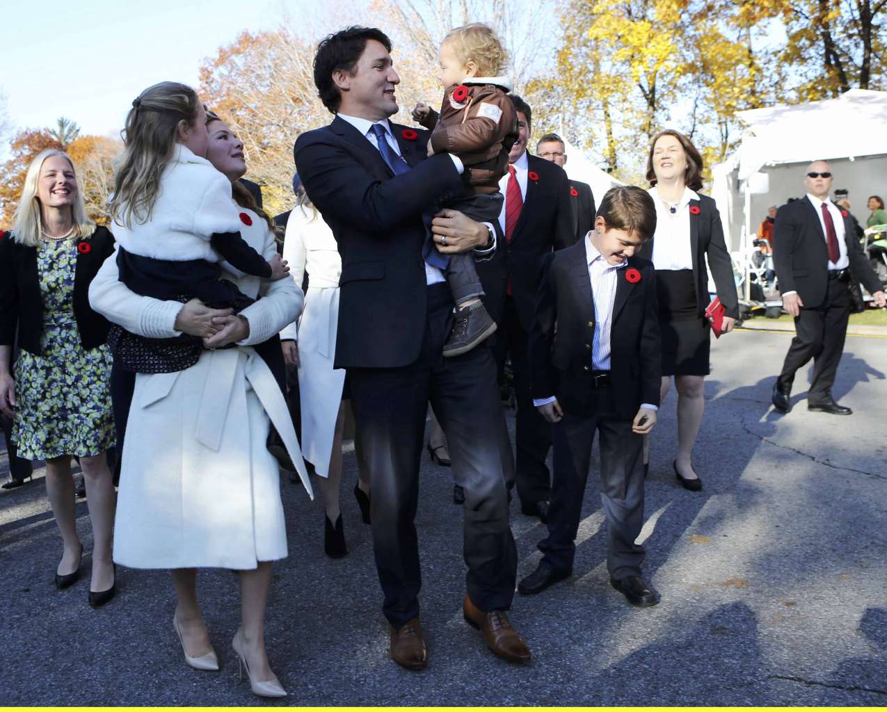Earlier, Trudeau's mother Margaret had been first to arrive for her son's swearing-in at Rideau Hall - the official residence of the governor general - carrying his youngest son Hadrian and with his two other children, Ella-Grace and Xavier, in tow.
