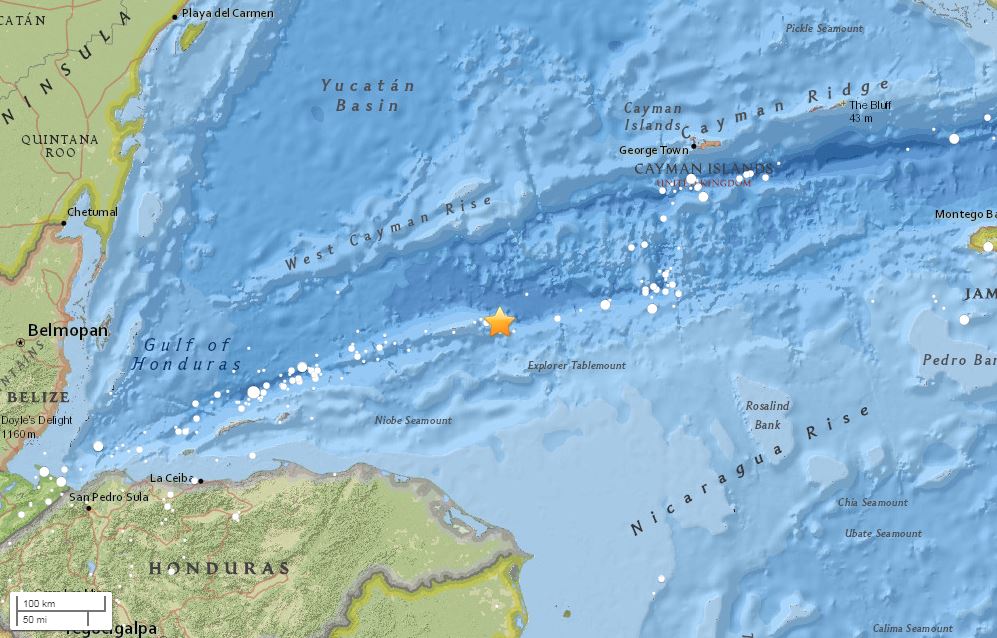 The US Geological Survey said the quake, initially reported as a magnitude 7.8, was centred 202 km northeast of Barra Patuca in Honduras and 307km southwest of George Town in the Cayman Islands.
