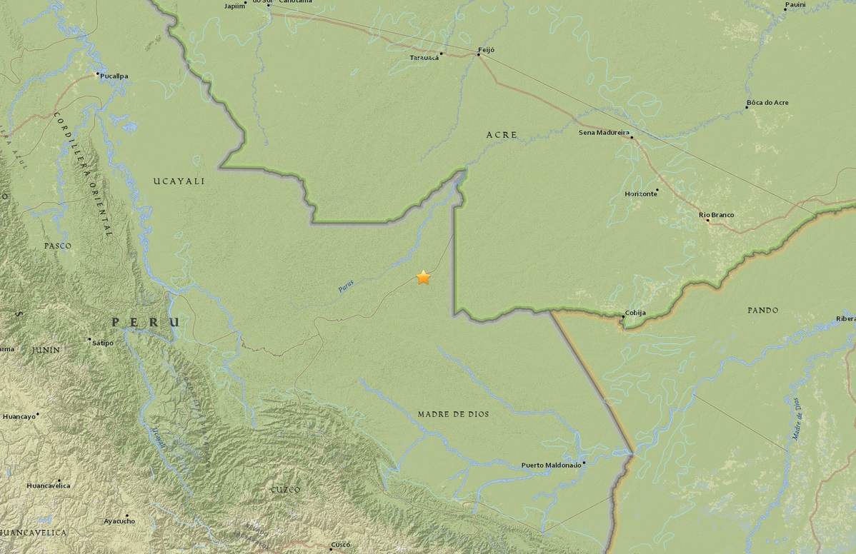 Peru's Geophysics Institute reported an initial quake of magnitude 7.3, followed by one of magnitude 7.2. The main quake's epicentre was located 296km north-west of the Peruvian city of Puerto Maldonado.