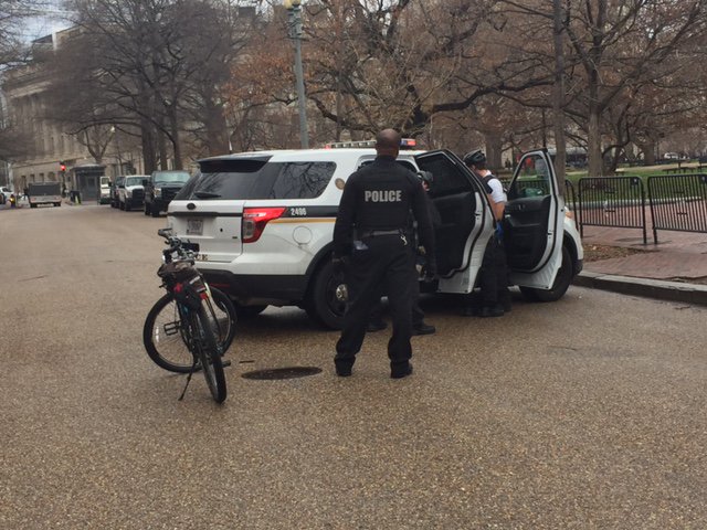 The unidentified man was taken into custody and explosive disposal teams were on the scene, Secret Service spokeswoman Cathy Milhoan told reporters in the White House briefing room.
