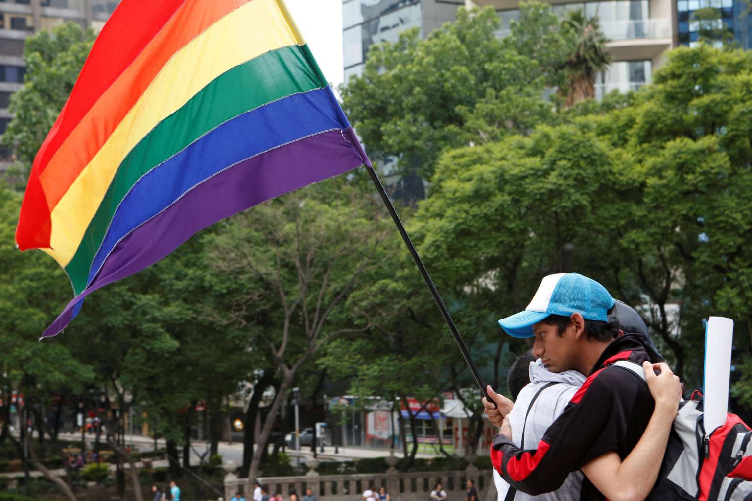 Members of the LGBT community embracing during a vigil for the victims of the mass shooting at a nightclub in Orlando, Florida, in Mexico City, on June 12.