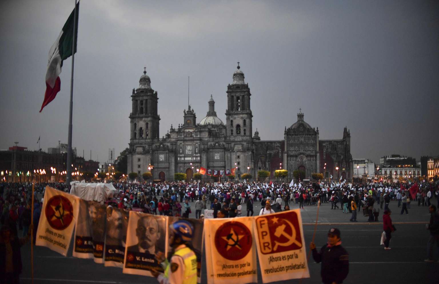 People gather at El Zocalo square during a protest against the increase in the price of gasoline and US President Donald Trump's plan of building a wall between Mexico and the US, in Mexico City on Jan 31, 2017.