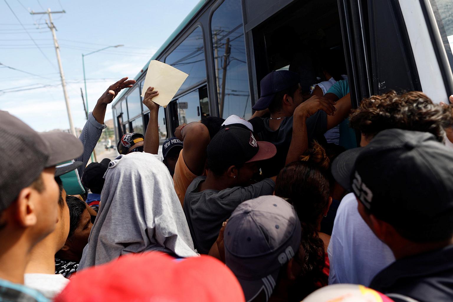 Two busloads of migrants arrived in the border city of Mexicali - which sits opposite Calexico, California - and paused for a rest stop before continuing west towards Tijuana, said AFP correspondents traveling with them.