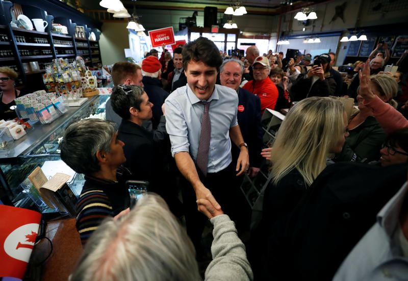 Liberal leader and Canadian Prime Minister Justin Trudeau campaigns for the upcoming election, in Orillia, Ontario, Canada on Oct 18, 2019.