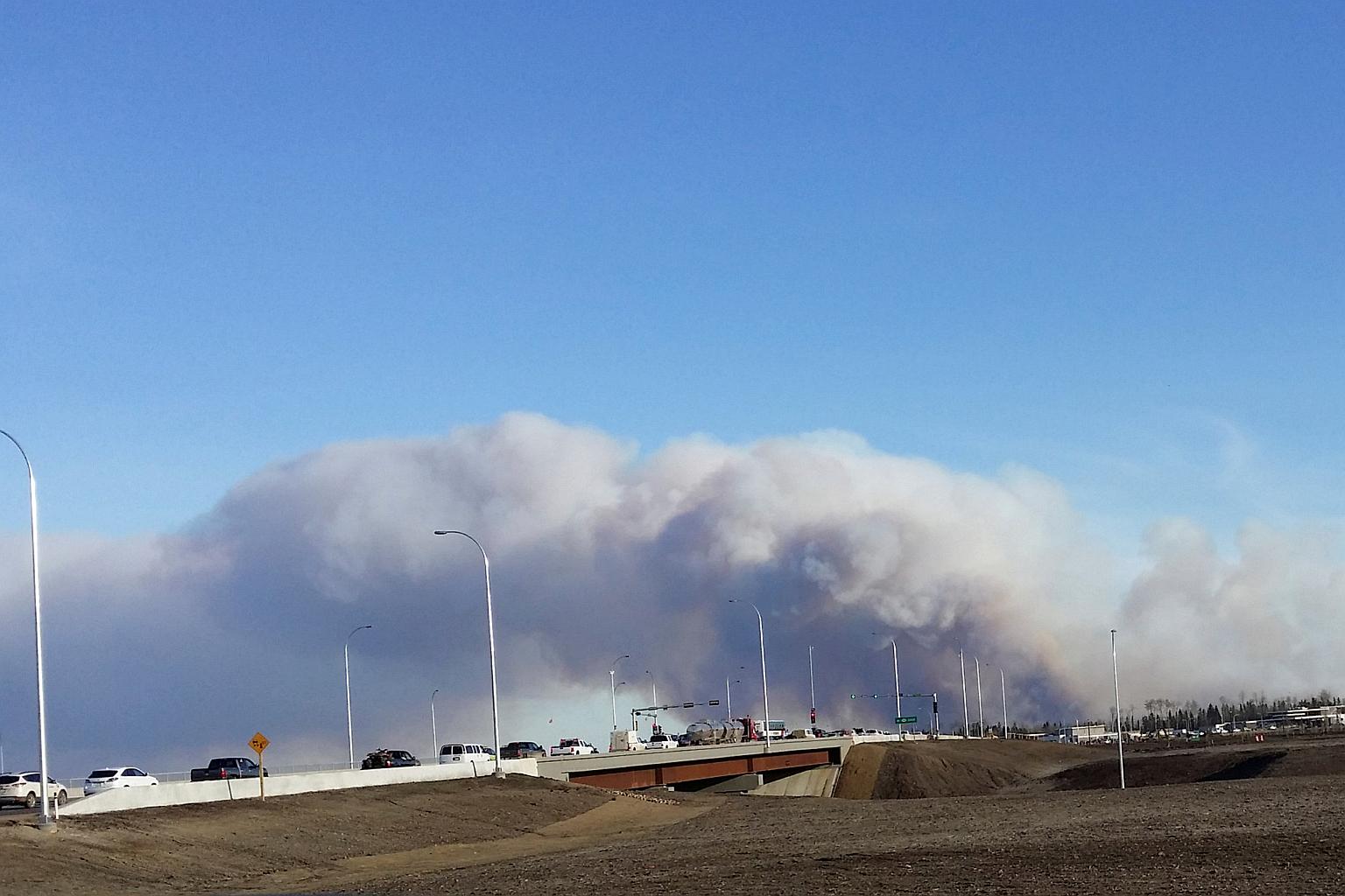 Earlier, TV footage and photographs on Twitter showed flames and smoke billowing over the city and traffic heading north on the highway to safety, while CTV News reported a trailer park had been destroyed.