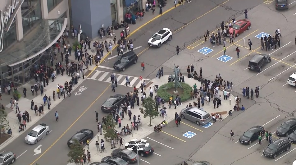 Television images showed scores of shoppers and retail clerks lining the sidewalks and parking lots outside the mall, which is one of the largest in Canada, in Toronto's north end.
