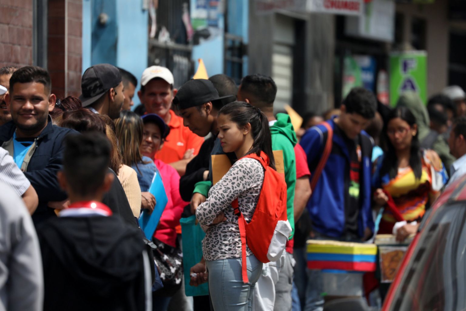 Venezuelan migrants queue to get temporary residency permits in Lima, Peru Oct 31, 2018.