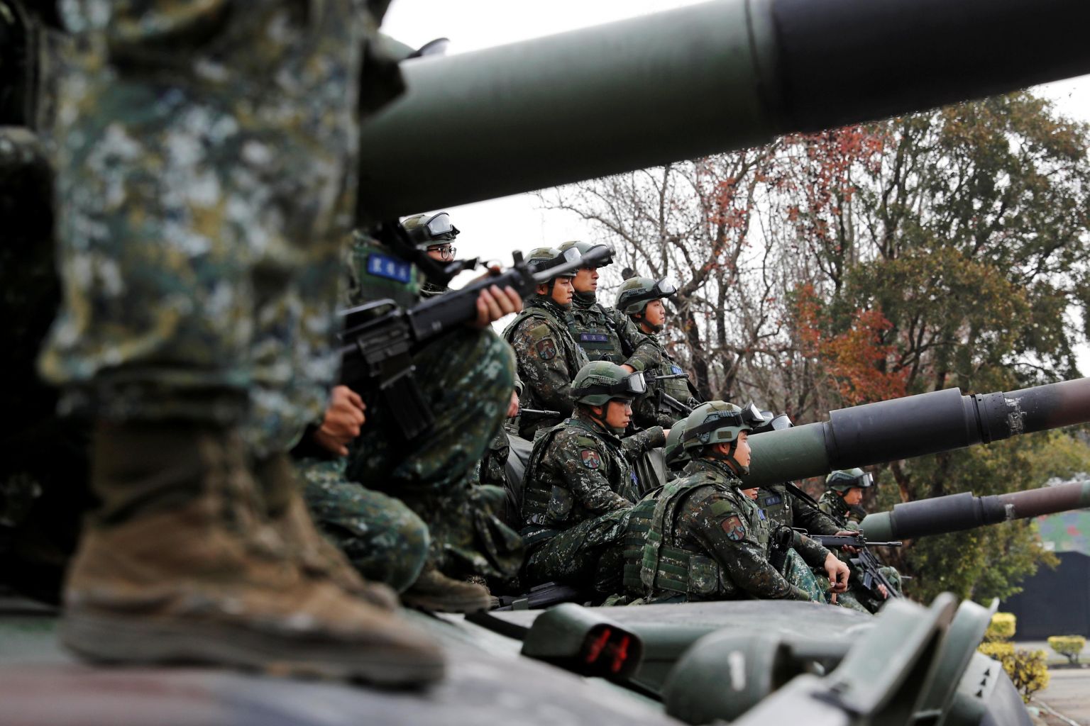 Taiwanese soldiers sit on a tank after an anti-invasion drill in January 2019. Taiwan scrambled aircraft following an incursion by Chinese jets on March 31.