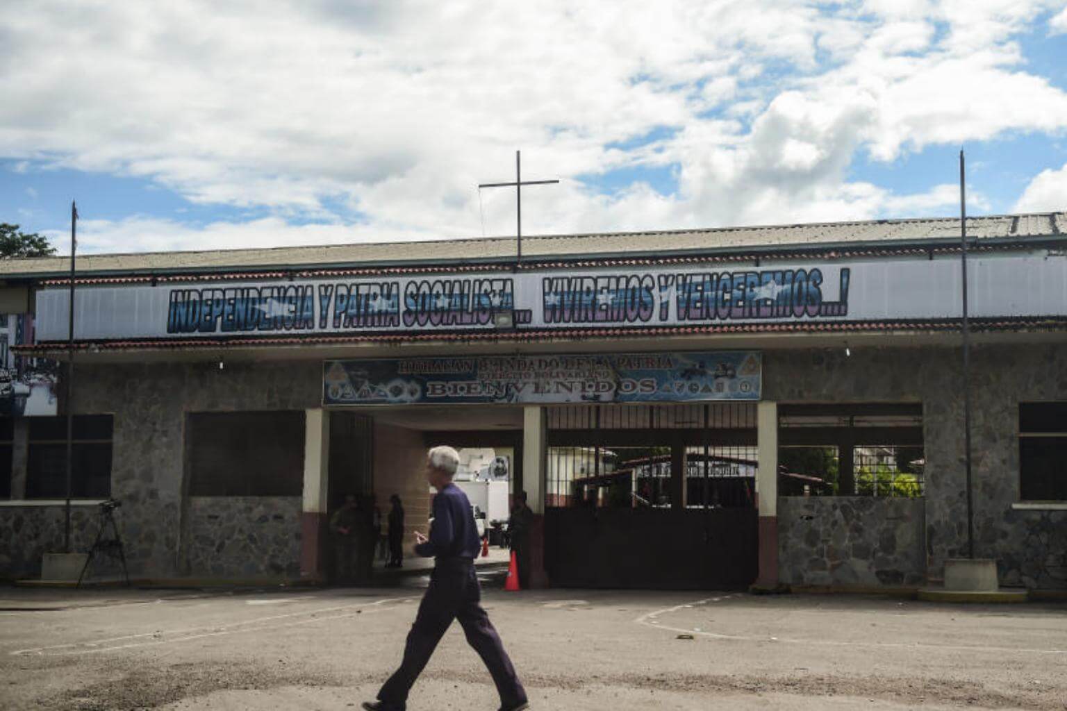 A man walks past the military base of Paramacay Fort in Venezuela's third city, Valencia on Aug 6, 2016.