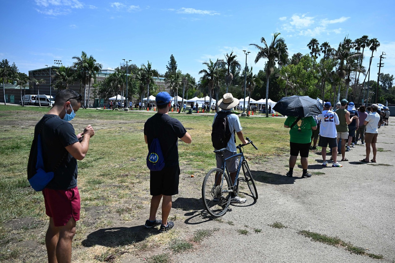 People waiting in line for the monkeypox vaccine in Los Angeles on July 27, 2022.