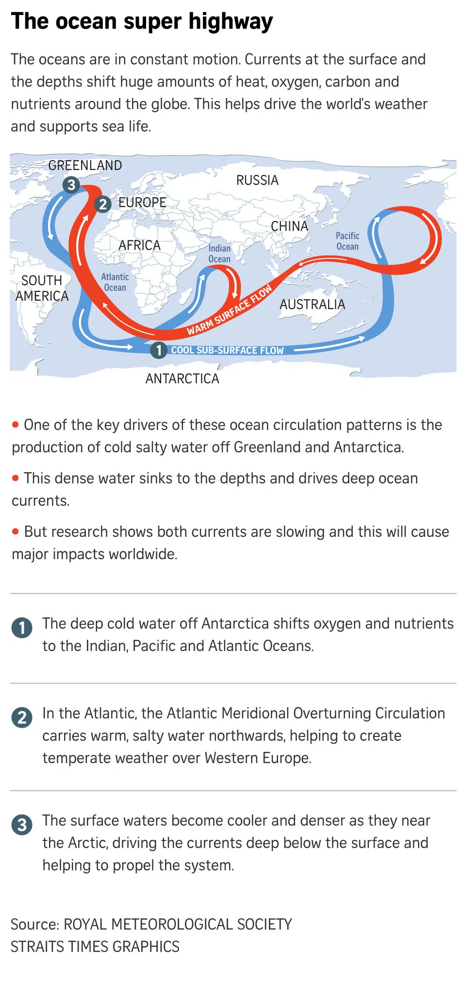 SINGAPORE - A major ocean circulation that forms around Antarctica could be headed for collapse, risking significant changes to the world’s weather, sea levels and the health of marine ecosystems, scientists say, offering a stark warning about the growing impacts of climate change.
