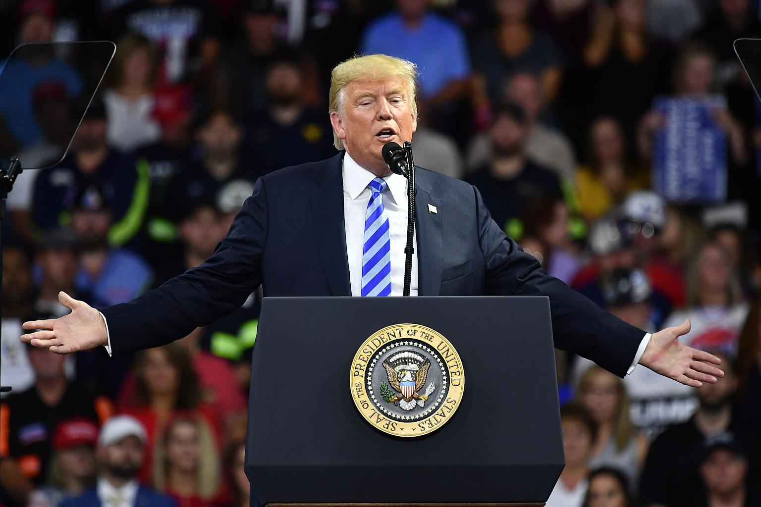 US President Donald Trump speaks during a political rally at Charleston Civic Center in Charleston, West Virginia on, Aug 21, 2018.