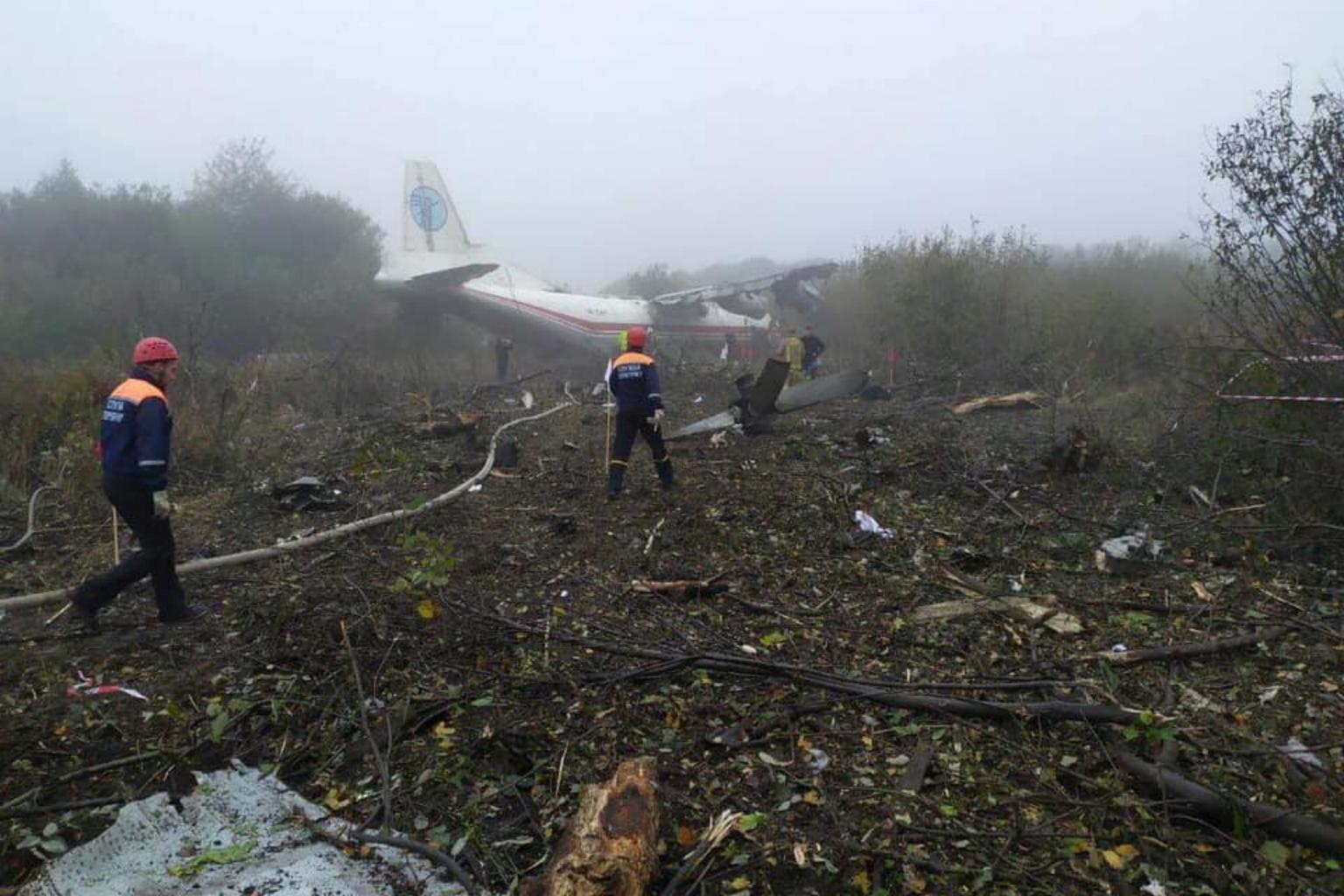 The Antonov-12 airplane with eight people on board crash-landed 1.5 kilometres from the runway at the western airport of Lviv.