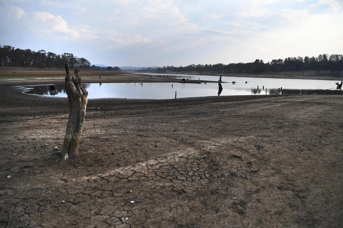 A nearly dry reservoir of the Storm King Dam near Stanthorpe, Queensland, Australia, on Oct 10, 2019.