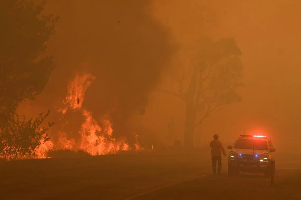 A New South Wales Rural Fire Service officer monitoring a bushfire along the Old Hume Highway near the town of Tahmoor, New South Wales, on Dec 19, 2019.