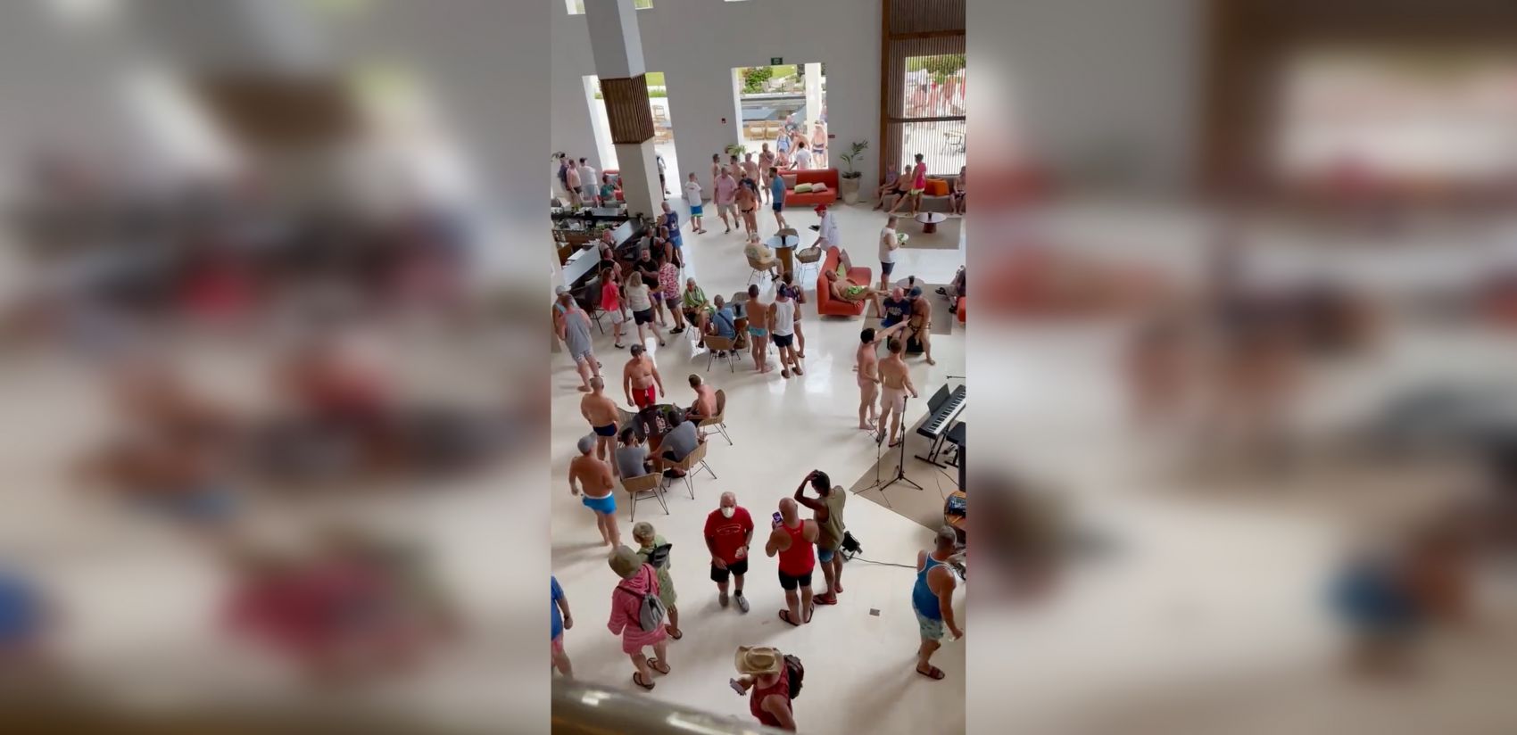 Videos posted on social media showed dozens of tourists, some in bathing suits, waiting in the hotel lobby along with staff.