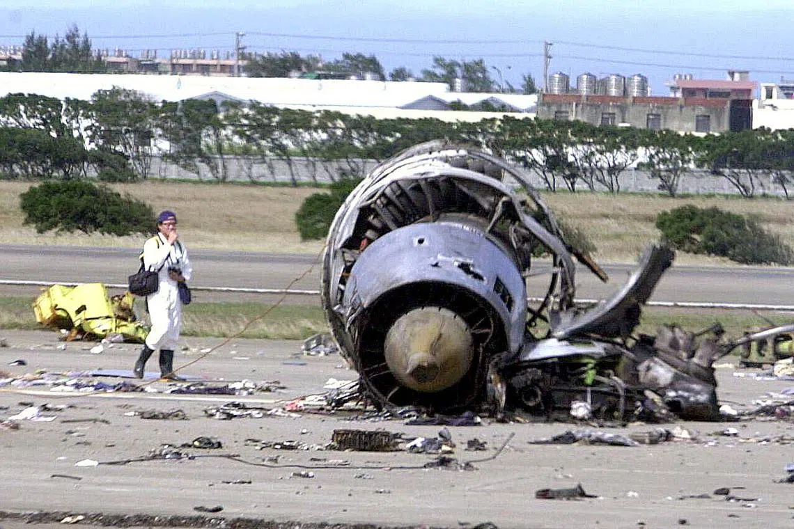 The 747, bound for Hong Kong, breaks in midair soon after take-off and crashes into the Taiwan Strait, killing all 225 people on board. The cause was traced to metal-fatigue cracks from improper repairs 22 years earlier.