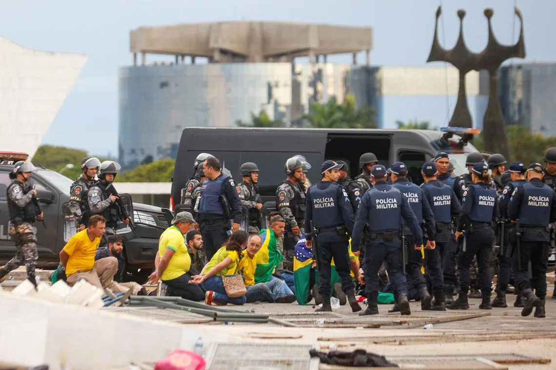 Security forces detain supporters of Brazil’s former President Jair Bolsonaro during a demonstration against President Luiz Inacio Lula da Silva, in Brasilia, Brazil, on Jan 8, 2023.