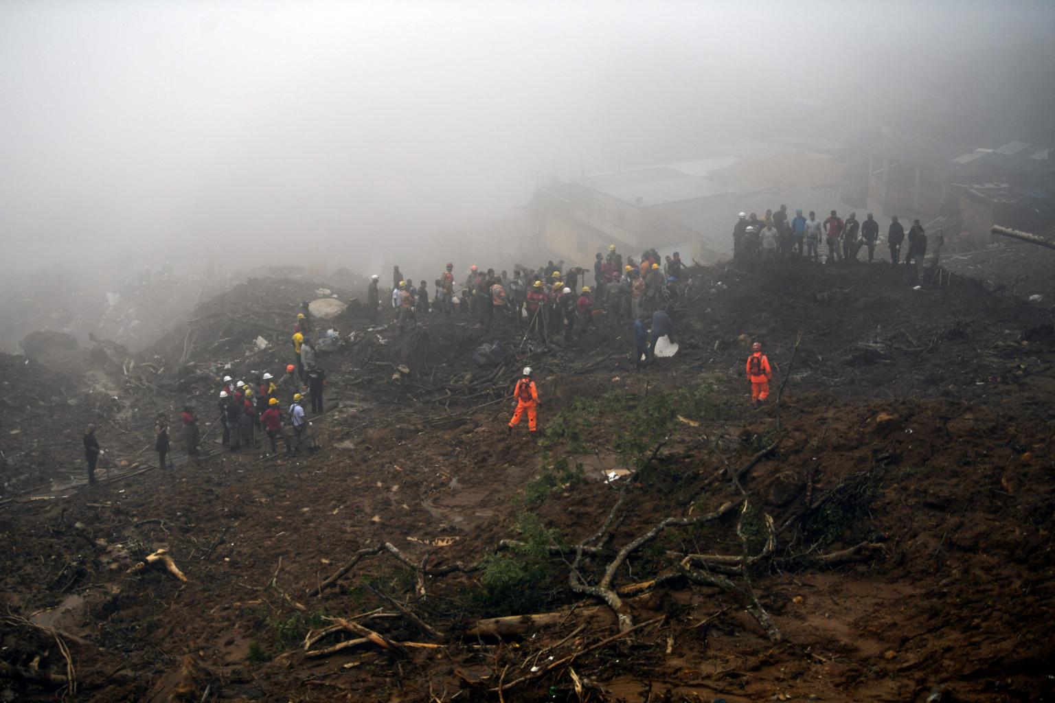 Rescue workers searching for victims after a giant landslide in Petropolis, Brazil, on Feb 19, 2022.