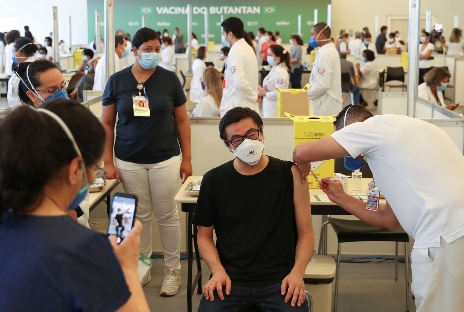 Minutes after federal health agency Anvisa approved the Sinovac vaccine on Sunday, Monica Calazans, a 54-year-old nurse in Sao Paulo, became the first person to be inoculated in the country, as Sao Paulo Governor Joao Doria looked on.