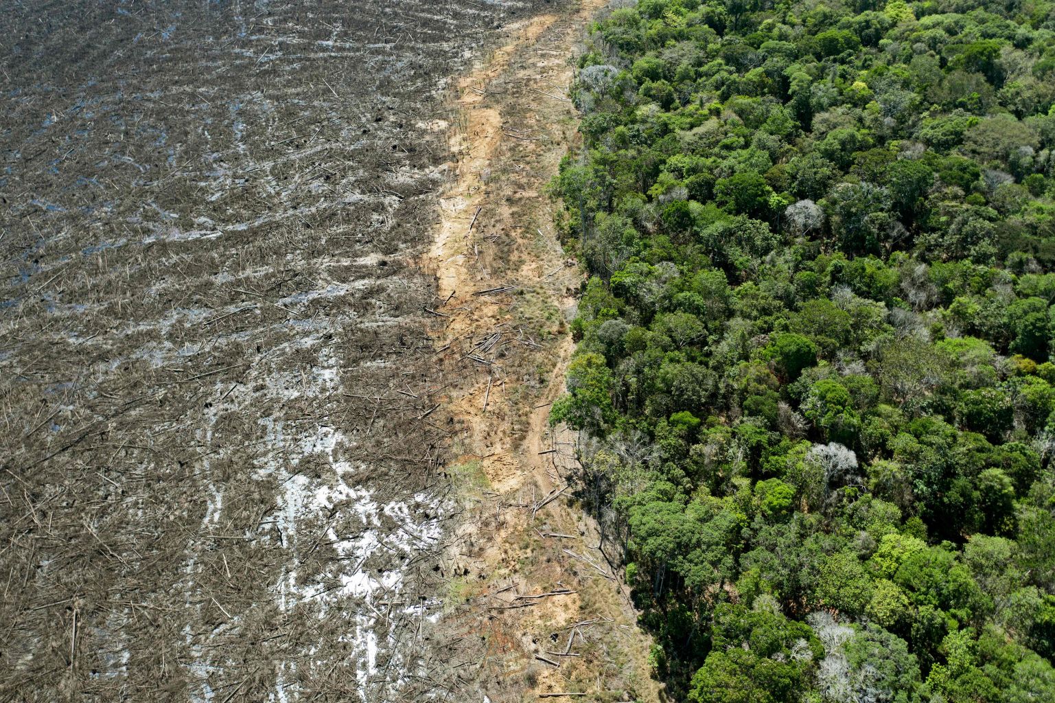 A 2020 aerial photo shows a deforested area of the Amazon rainforest close to Sinop, Mato Grosso State, in Brazil.